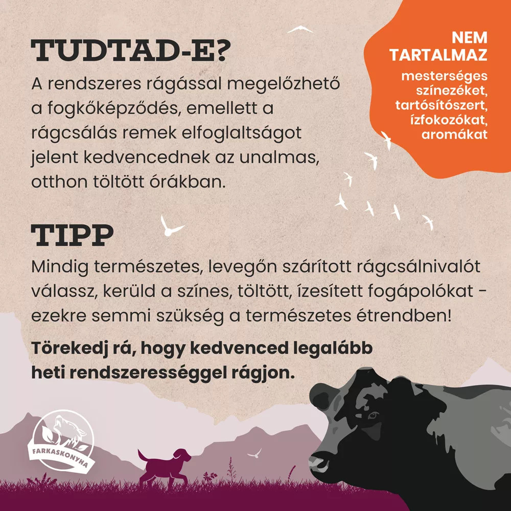A marha pacal gazdag B vitaminokban - kiváló kiegészítője az egészséges étrendnek. A rágcsálás remek elfoglaltságot jelent az unalmas órákban, ráadásul csökkenti a fogkőképződést.