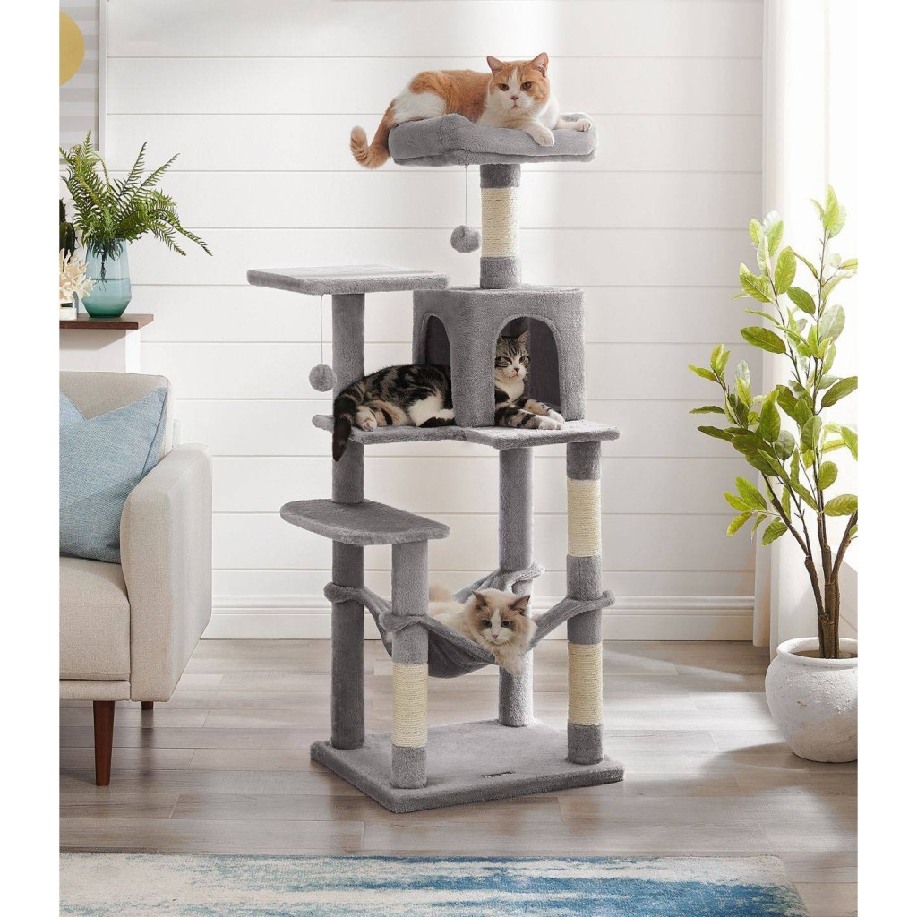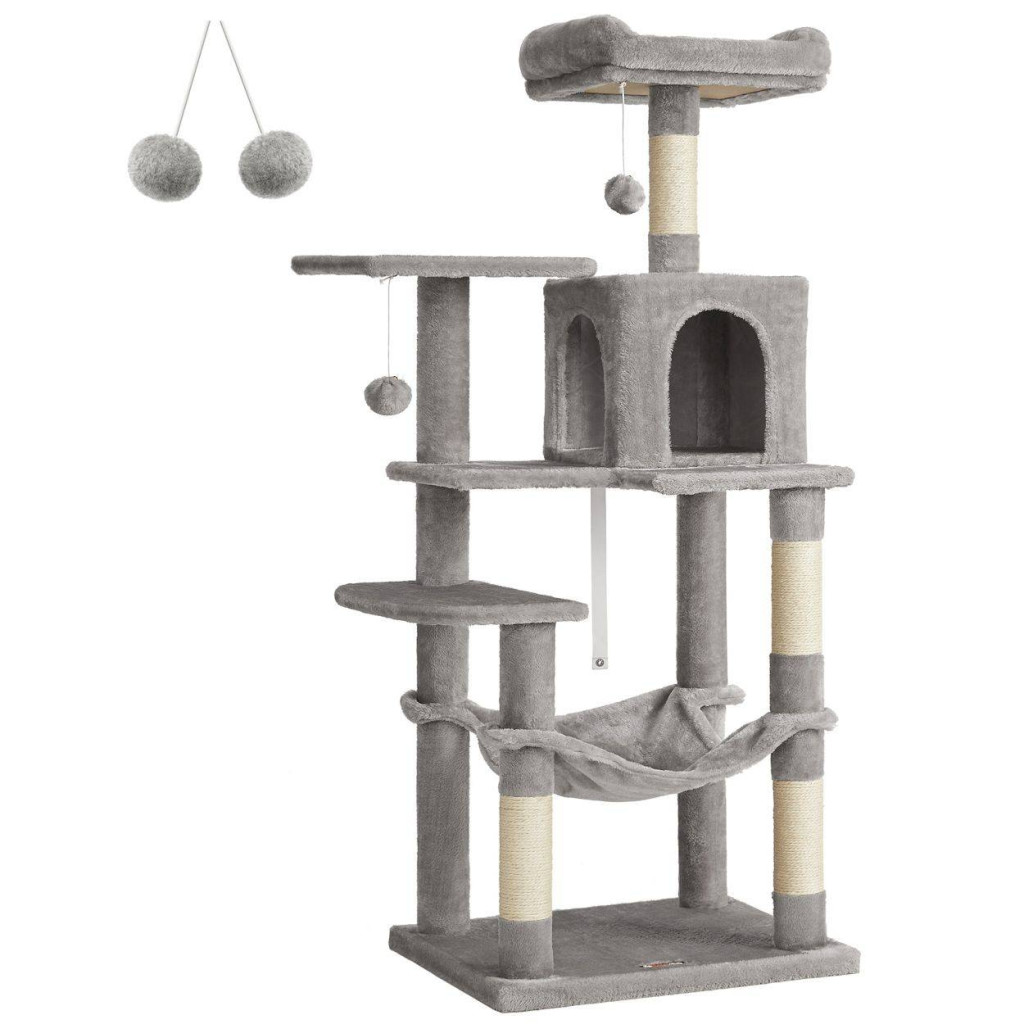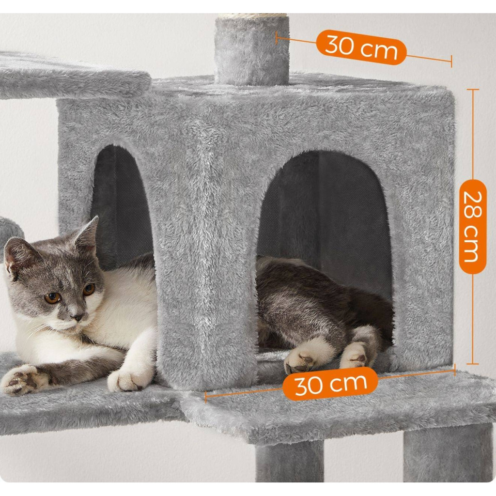 A fa kuckó egy kényelmes helyet biztosít, ahová visszavonulhat és pihenhet kedvence. Megerősített talppal és extra billenésgátlóval extra stabilitást biztosít, így kedvence nyugodtan ugrálhat. Akár három macskának is alkalmas. A használati utasításnak és a jelölt alkatrészeknek köszönhetően gyorsan össze tudja szerelni a kaparófát.