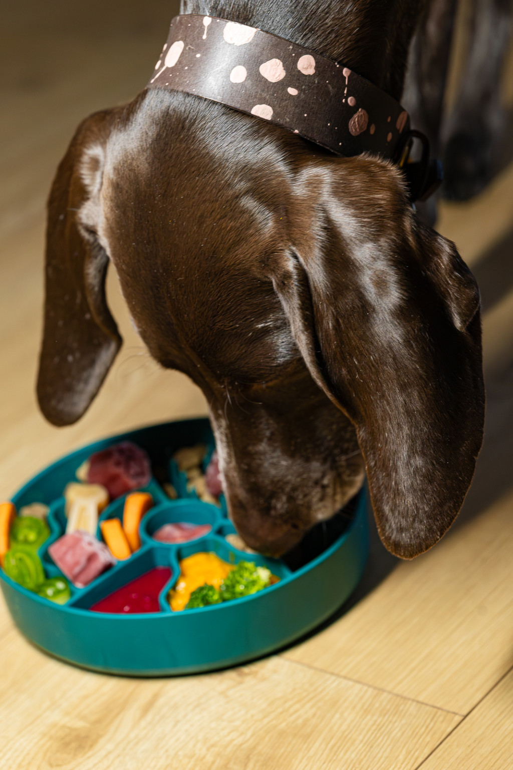 Egyedi kialakítása segít csökkenteni a gyors élelmiszer-fogyasztást, ami emésztési problémákhoz, puffadáshoz vagy fulladásveszélyhez vezethet. A tál alján található speciálisan kialakított bordáknak és kiemelkedéseknek köszönhetően kutyájának vagy macskájának jobban részt kell vennie az étkezési folyamatban, ami elősegíti a jobb emésztést és az általános közérzetet.