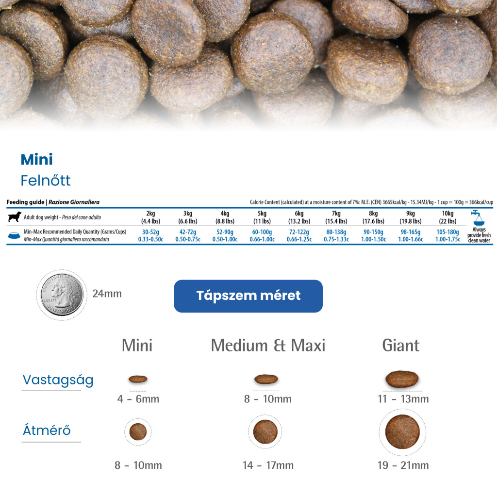 Energia érték: Kcal/Kg 3665, Mj/Kg 15,33.