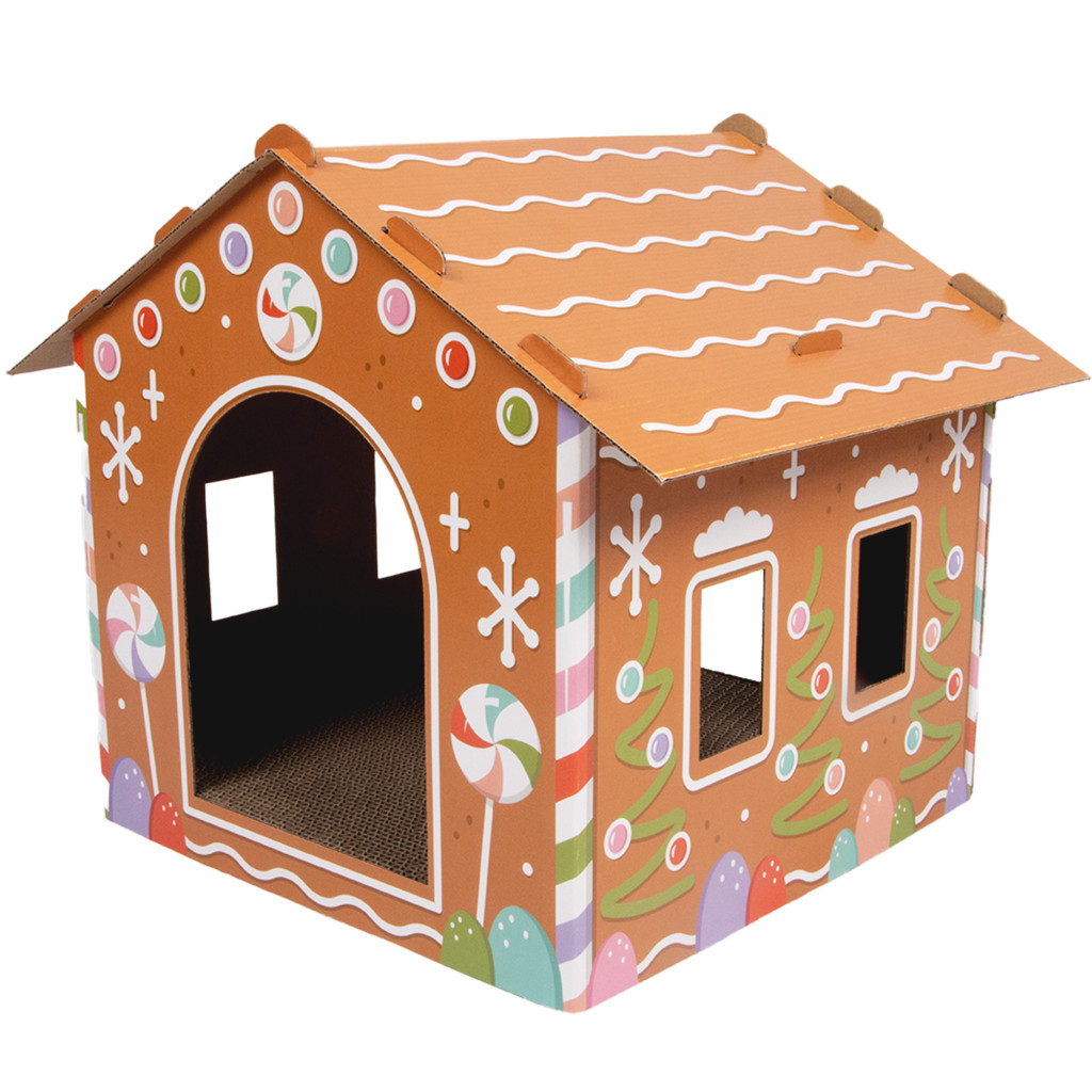 Adjon macskájának tökéletes otthont otthonában az ünnepekre. Ez a karton mézeskalács ház tökéletes az éjszakai szunyókáláshoz vagy a nappali pihenéshez.