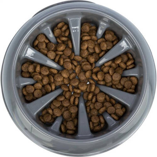 A Trixie Slowfeeding Plastic/TPR etetőedény egy műanyag etetőedény kutyáknak vagy macskáknak, amely megakadályozza a falánkságot és minden típusú táplálékhoz alkalmas. A falánkság negatív hatással lehet kutyája egészségére, például gyomor- és emésztési problémákat okozhat. Segítsen csökkenteni ezeket a problémákat a Trixie Slow Feeder táljával. Ez az habzsolásgátló tál a talpán található mintázatnak köszönhetően arra készteti a kutyát, hogy több erőfeszítést tegyen a táplálék eléréséhez, ami lassabb evést biztosít. A tál nedves és száraz táplálékhoz egyaránt használható, és csúszásgátló gumigyűrűvel van ellátva. Mosogatógépben mosható!