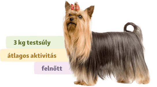 ** Átlagos aktivitású, 3 kg testsúlyú Yorkie felnőtt kutya esetében a gyártó által ajánlott 63 g napi táplálékbevitelre vonatkozik. A napi etetési költség 24 napra leosztott kerekített összeg, a pontos napi etetési ár 237,46 Ft 23,81 napra számolva.