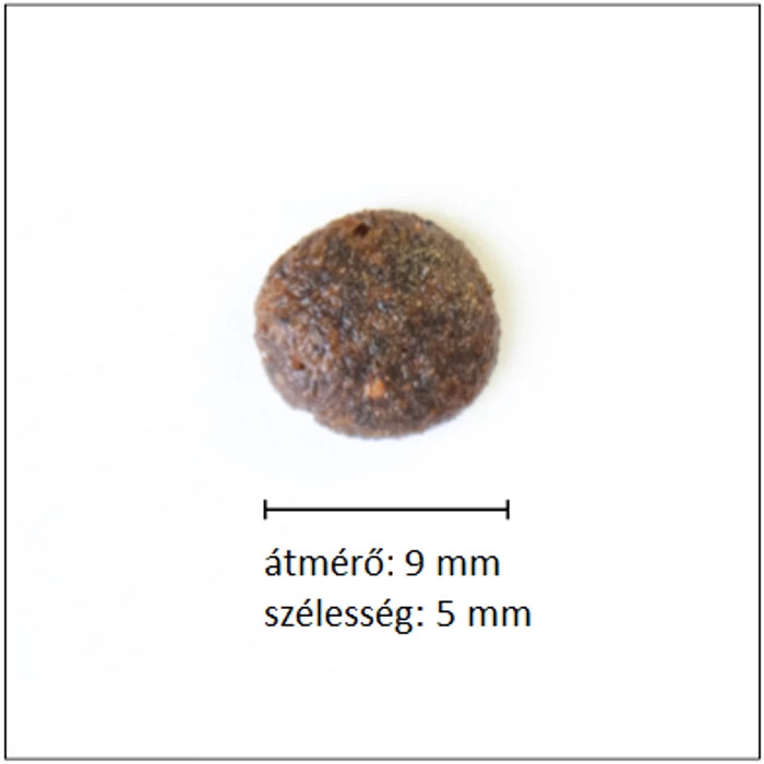 Metabolizálható energia (CEN): 4045 kcal/kg; 16,9 MJ/kg, aminek 39%-a fehérjéből, 40%-a pedig zsírból származik.