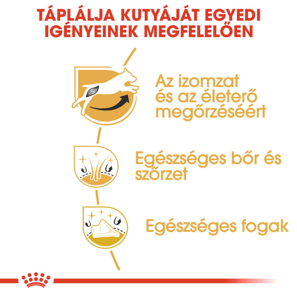 A Jack Russell Terrier élénk vérmérsékletéről ismert, ezért ez a táp hozzájárul az izomtömeg fenntartásához és a fizikai aktivitás támogatásához is. Ez a táp gondosan beállított fehérjetartalmának és a táphoz hozzáadott, a vitalitást fenntartását elősegítő antioxidáns-komplexnek köszönhető.