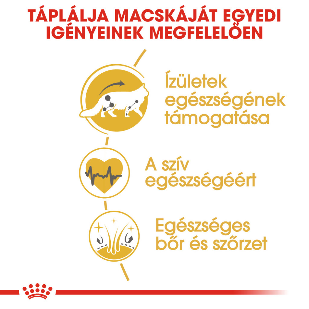 A ROYAL CANIN® Maine Coon Adult táp taurinnal és Omega-3 zsírsavakban(EPHA,DHA) gazdag ,hogy elősegítse és támogassa a szív és érrendszer egészséges működését.