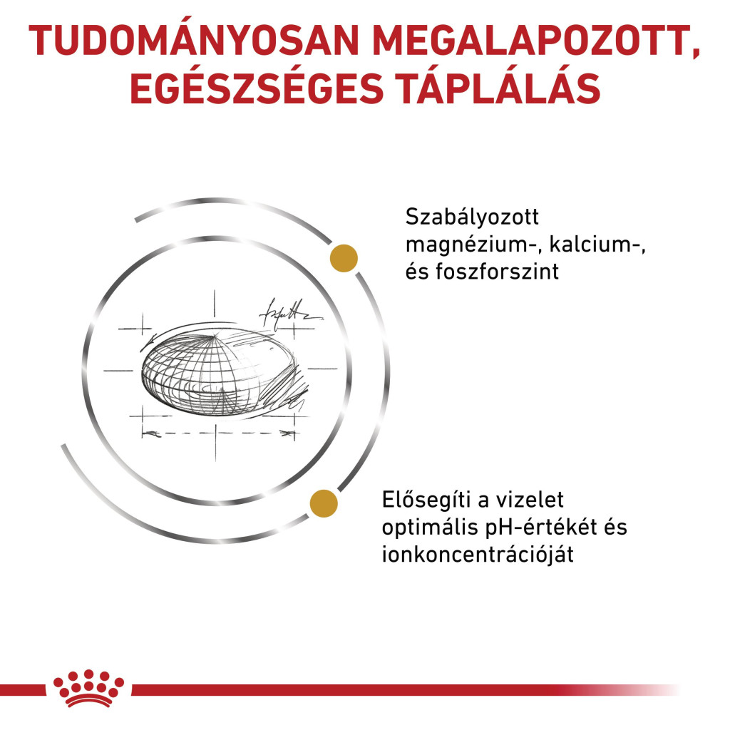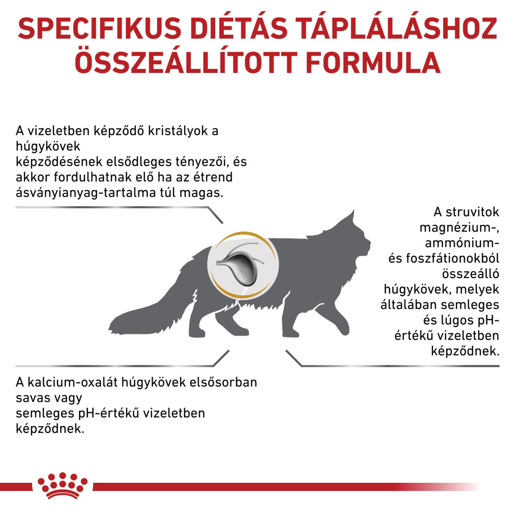 Alacsony magnéziumtartalom : Csökkentett mennyiségben tartalmaz magnéziumot, amely a struvitkristályok egyik alkotóeleme.